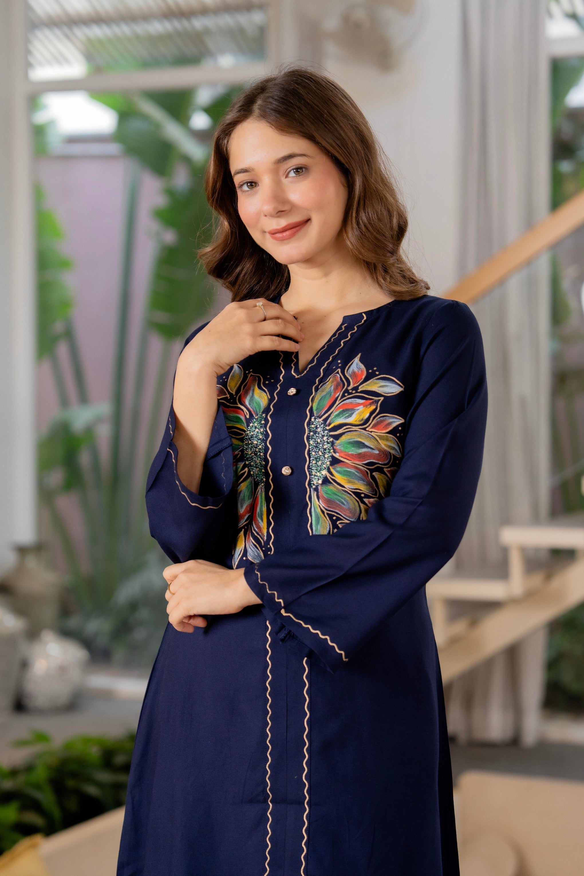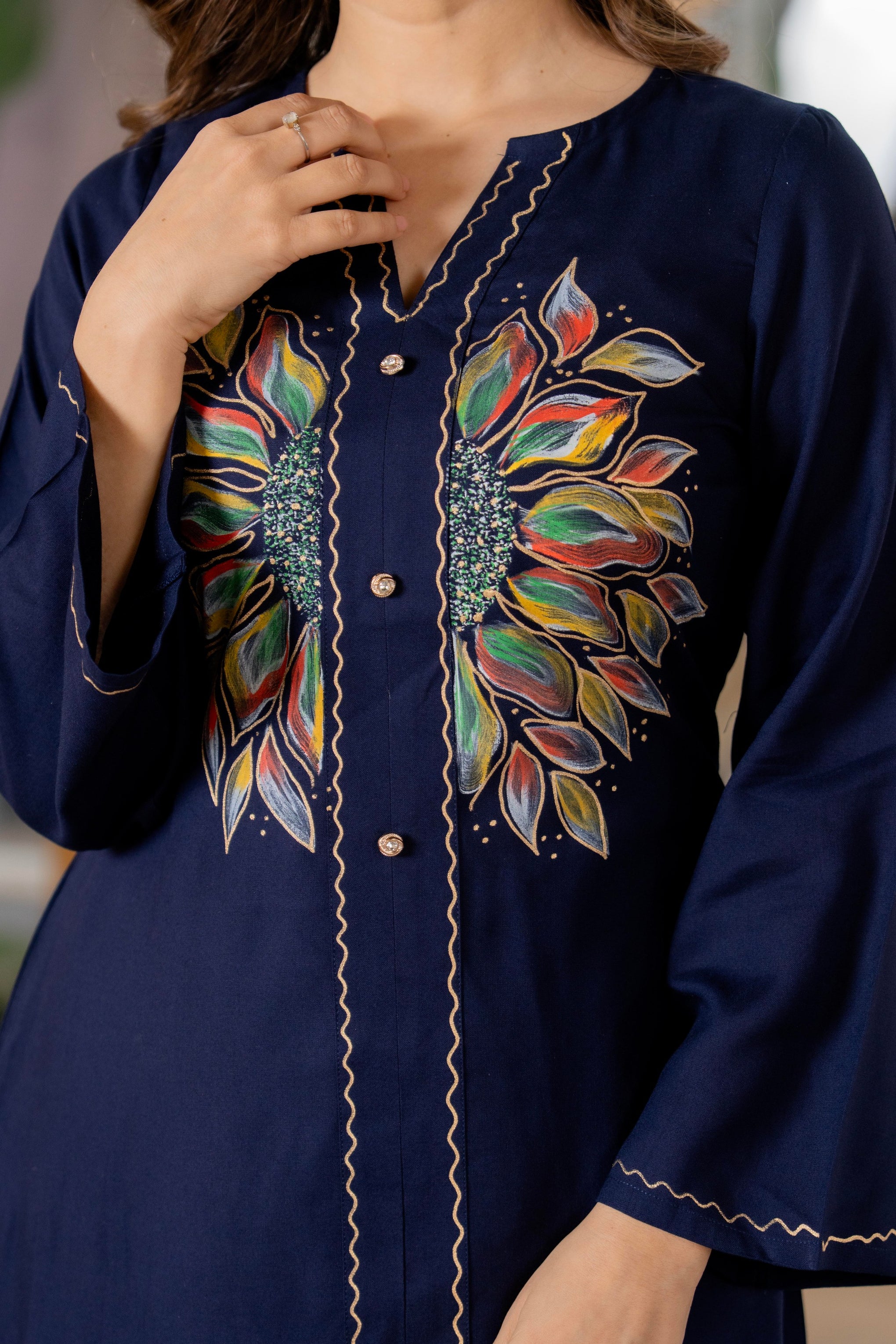 • Kurta Neckline: V-Neck