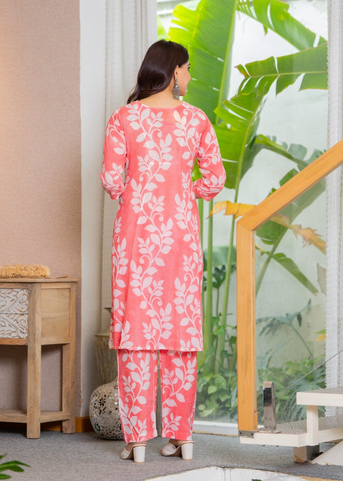 Redefine everyday elegance with this Pure Cotton Hand Printed Co-ord Set, crafted to offer both comfort and contemporary charm. Made from breathable pure cotton, it features exquisite hand-printed motifs that reflect traditional artistry with a modern twist. The coordinated top and bottom ensure a stylish, effortless look β€” perfect for casual outings, brunches, or travel wear.
