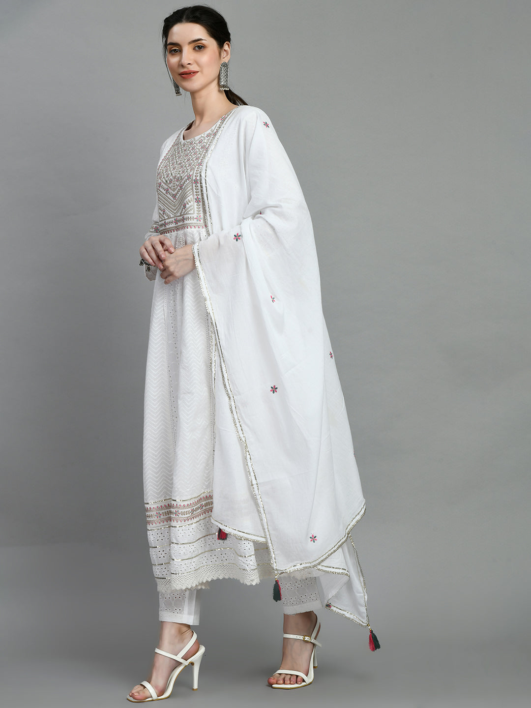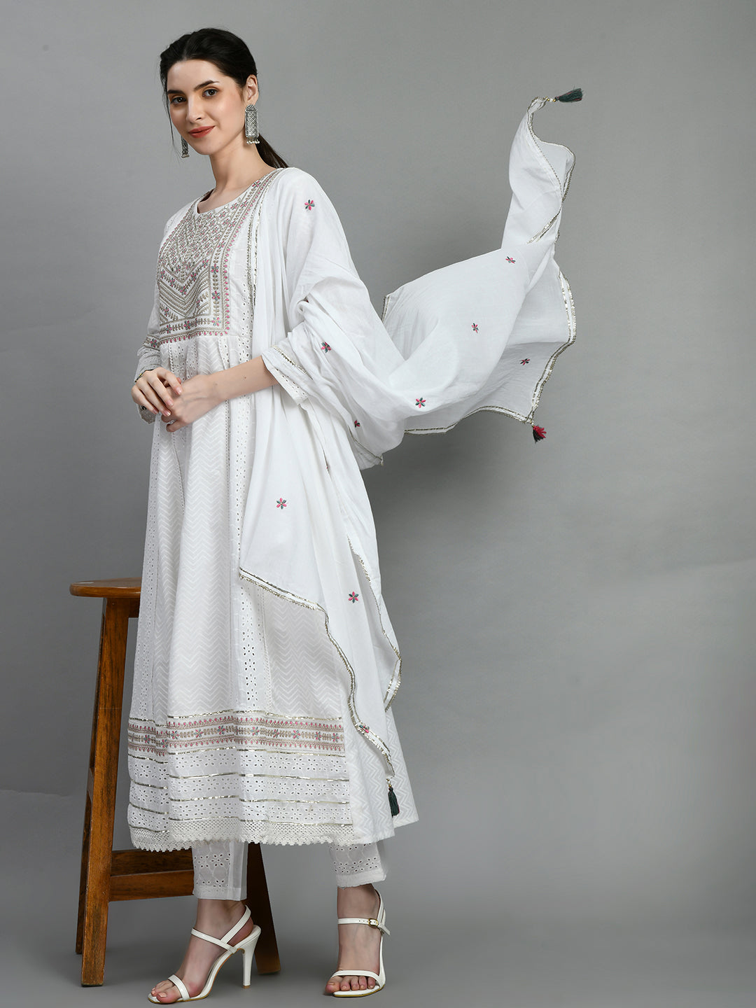 • Dupatta: Matching cotton dupatta with embroidered and sequined border