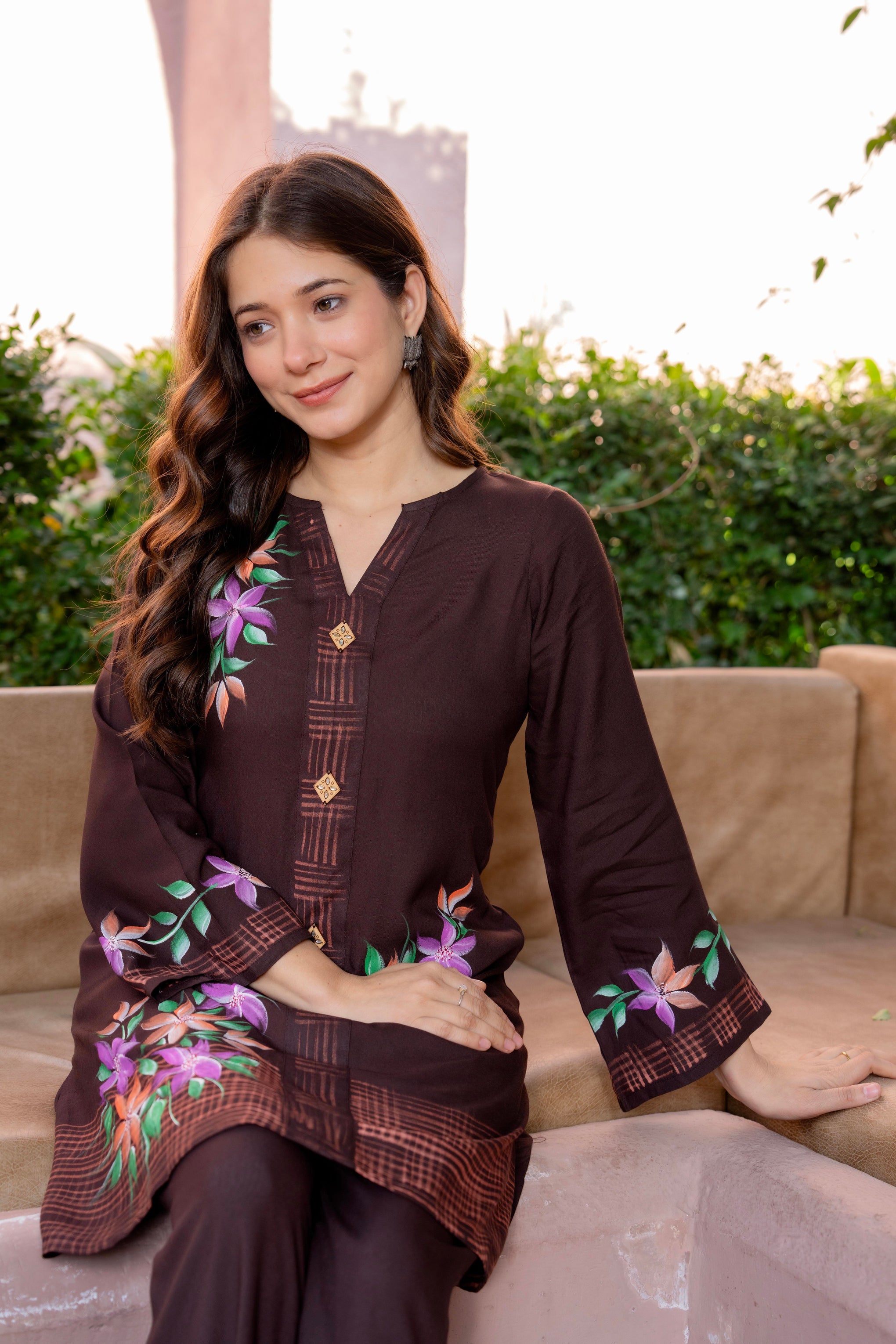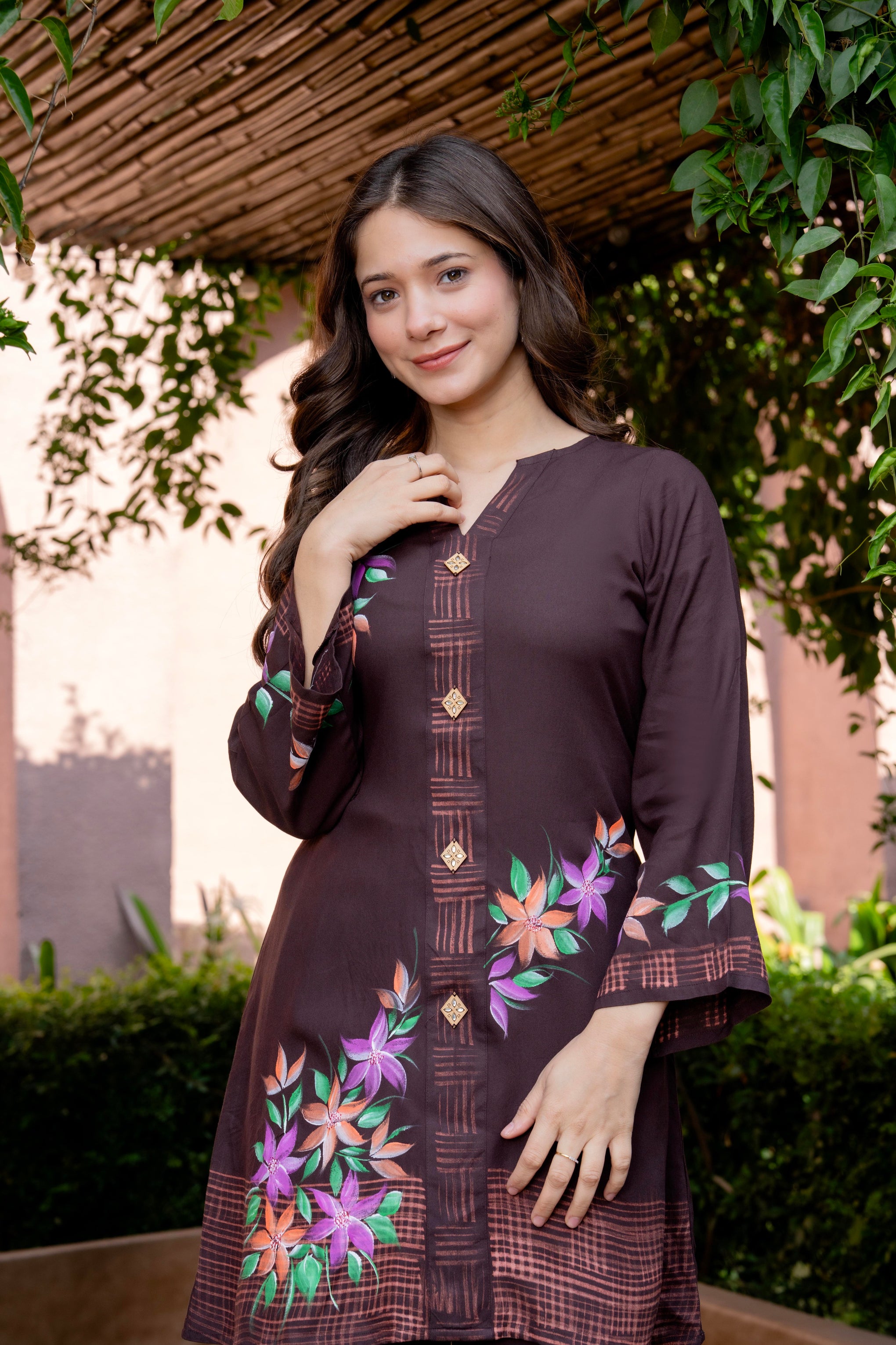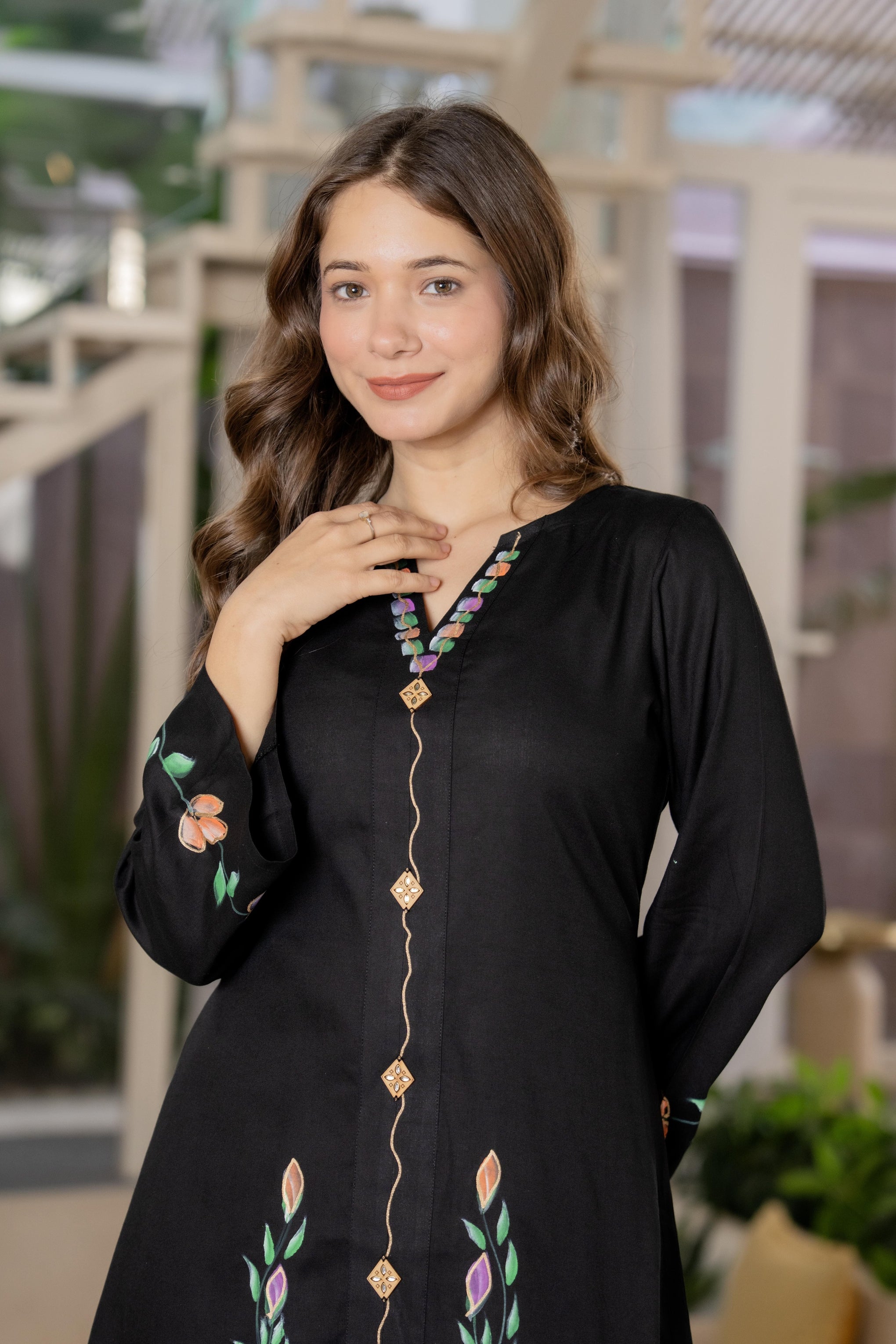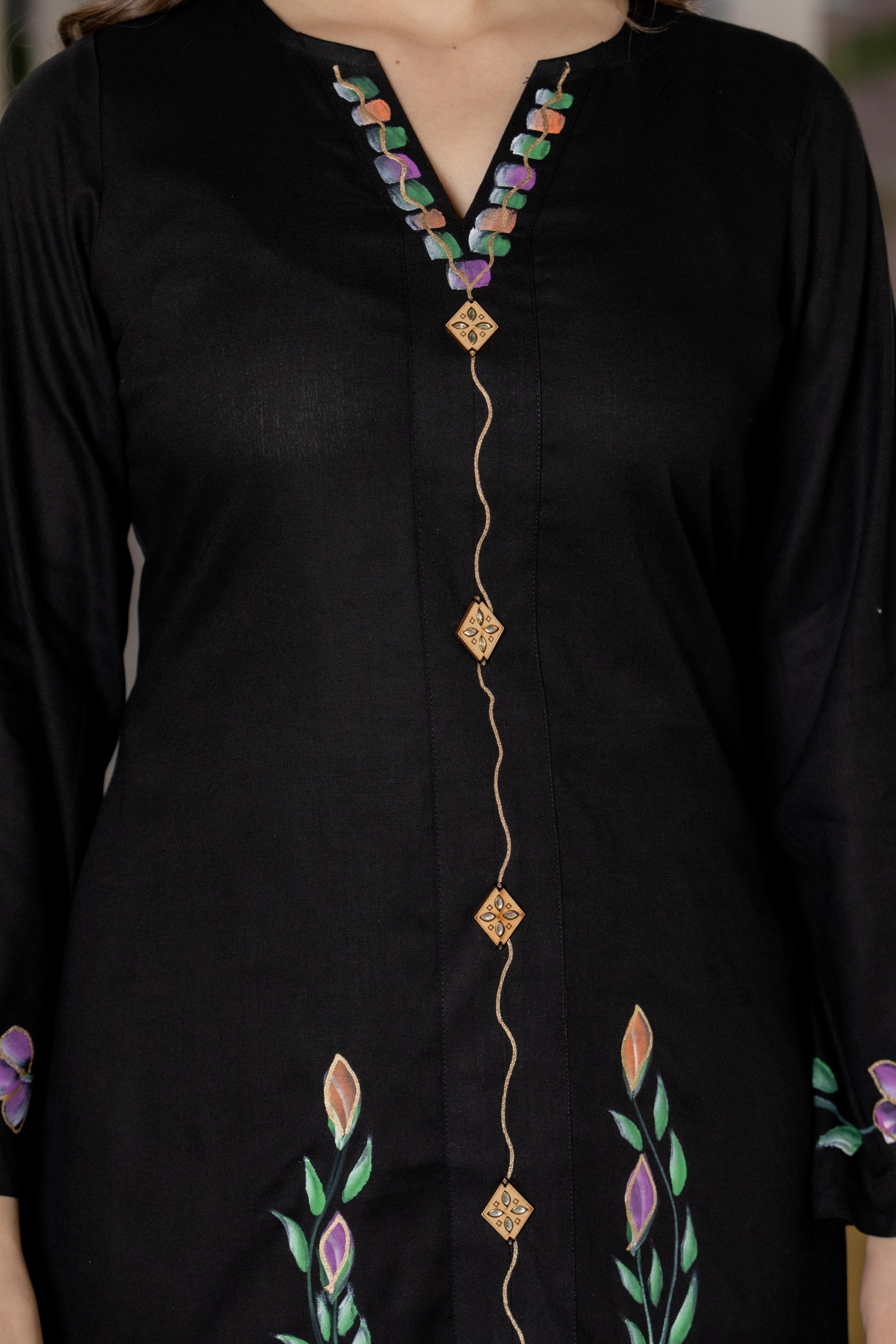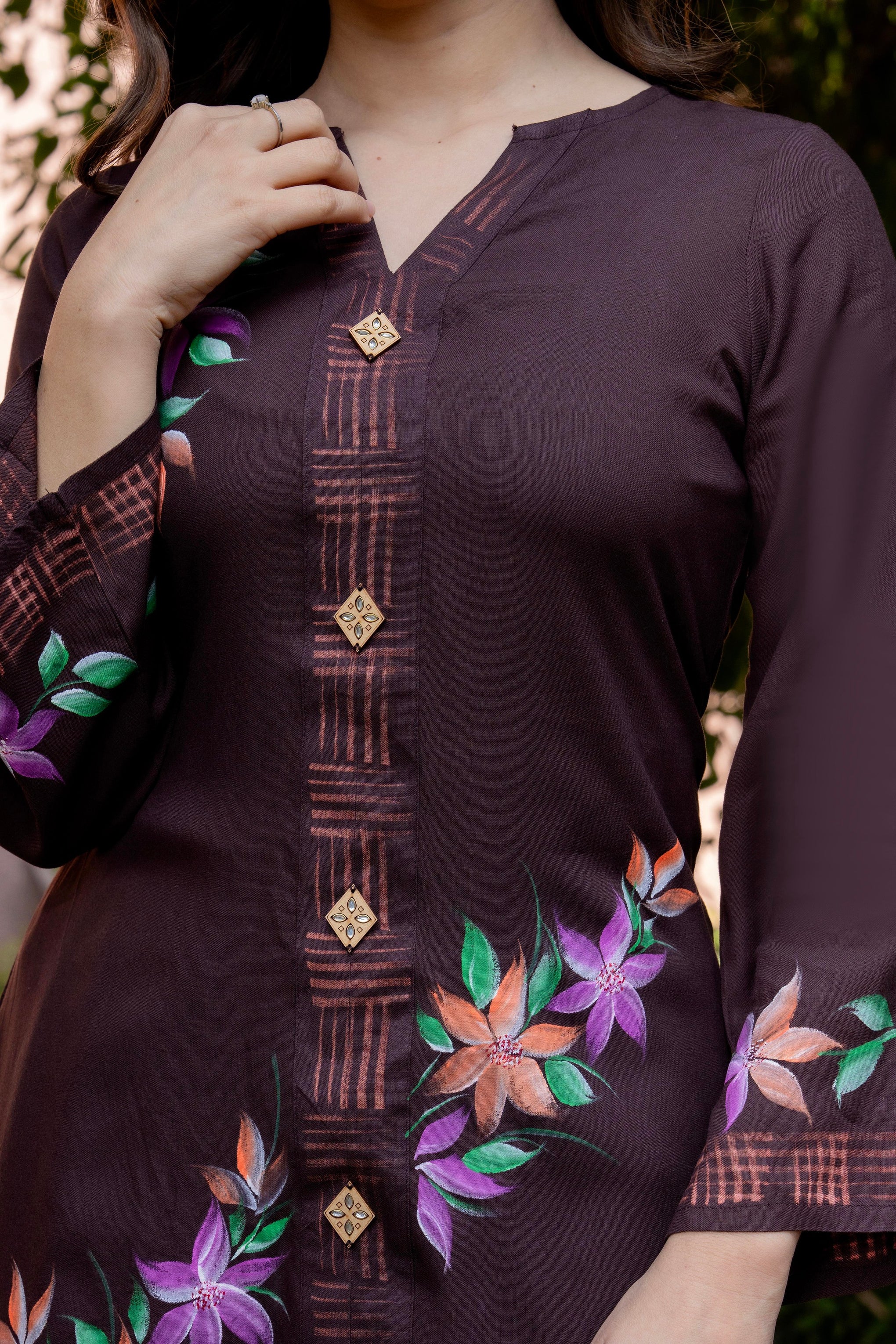 • Kurta Neckline: V-Neck